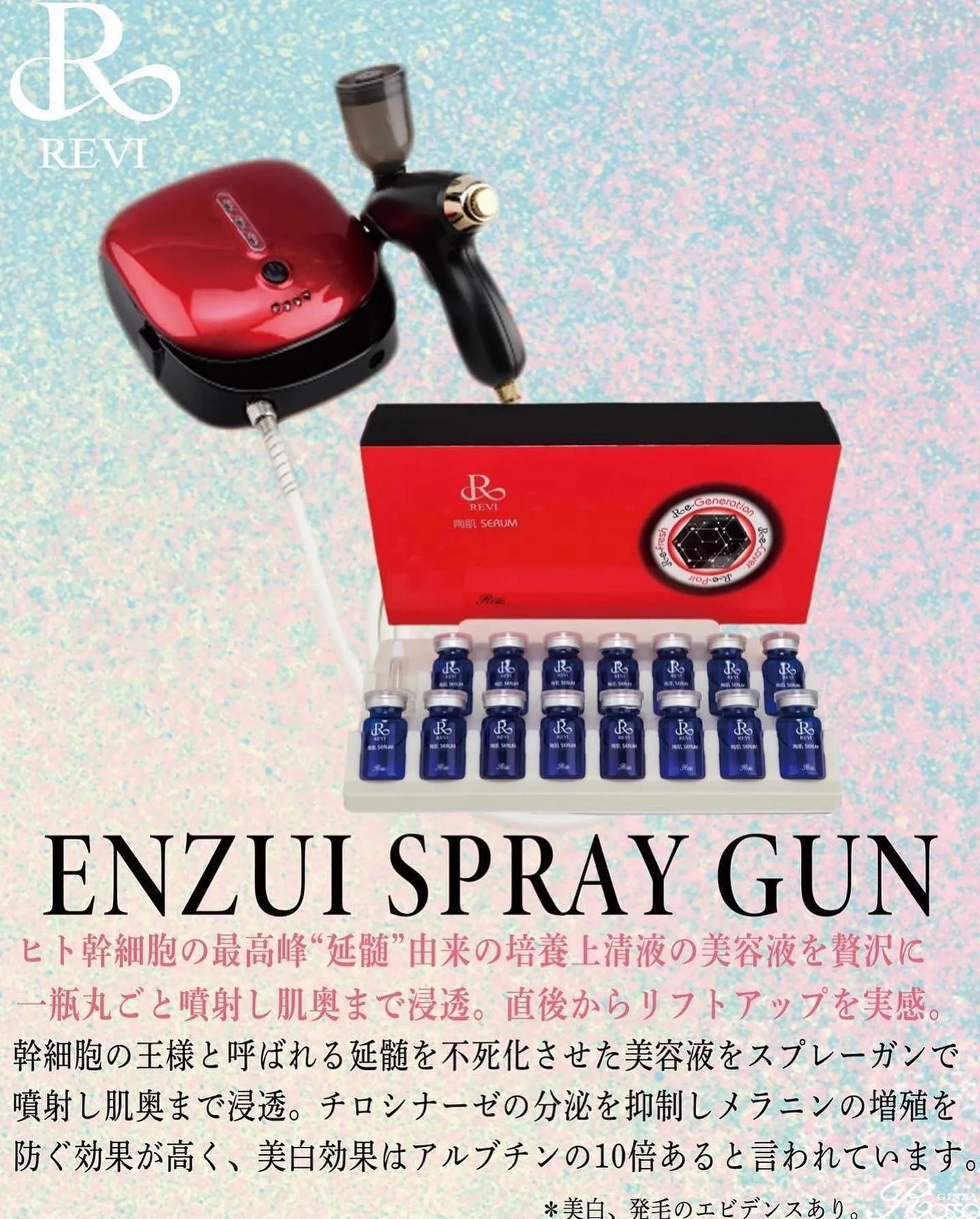 延髄スプレーガンで驚きの美白・リフトアップ! 延髄スプレーガンで驚きの美白・リフトアップ!こんにちは!REVI正規販売会社の小林です✨本日はサロンでも自宅でも使っていただける最強美白ケア延髄スプレーガンのご紹介💎ヒト幹細胞の最高峰延髄由来の…